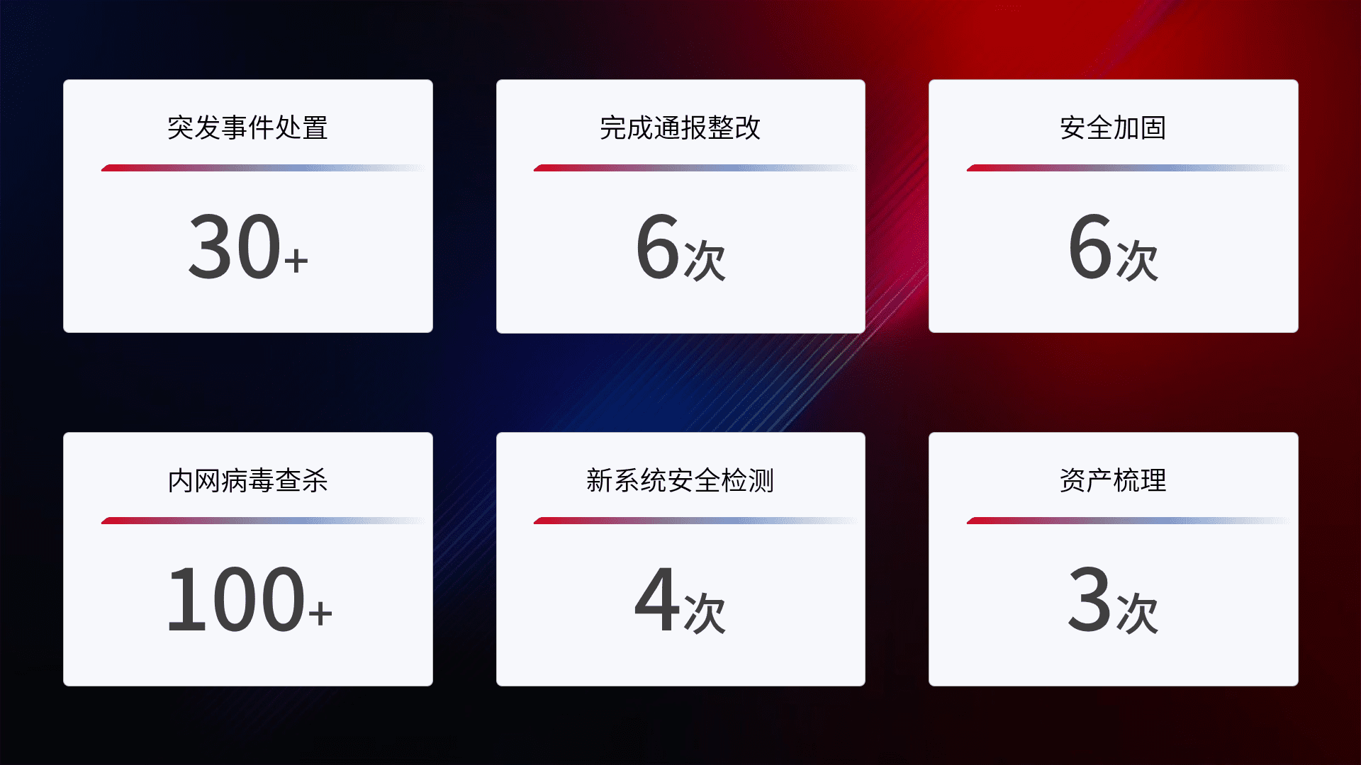 网络安全加固与风险管理:通过技术加固手段,,,如加强区域隔离,,缩减攻击内网横向移动的范围;优化现有网络安全管理制度,,,降低网络威胁暴露面,,,减少被黑客攻击的可能性。。