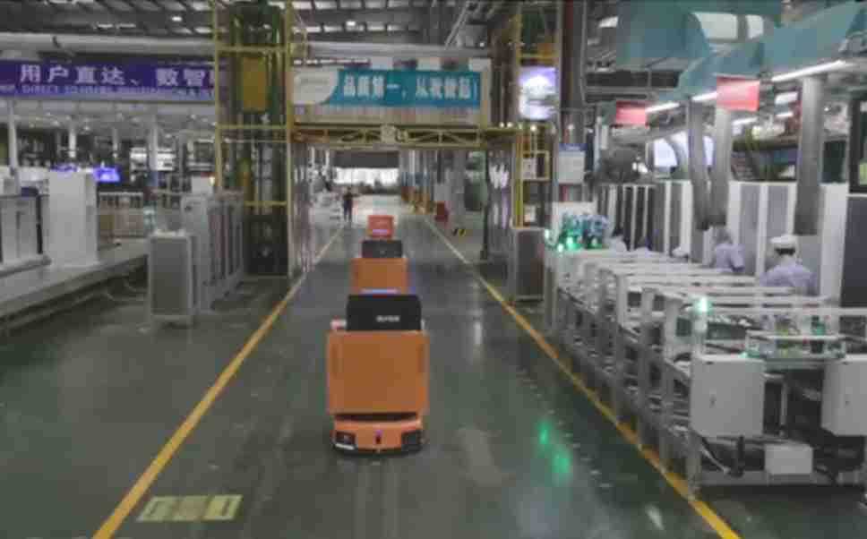 为车载冰箱物流配送打造的智能解决方案,,包含产中物流通过潜伏举升AMR搬运至线边,,产后成品物流智能仓储,,,流程包含产中物流智能齐套入库,,线边安灯叫料AMR智能配送至线边,,,成品入库、、、出库,,,,通过无人堆高车机器人,,,智能仓储管理替代人工作业管理,,实现更高存储、、、更高效率、、、、更具柔性化的解决方案。。。